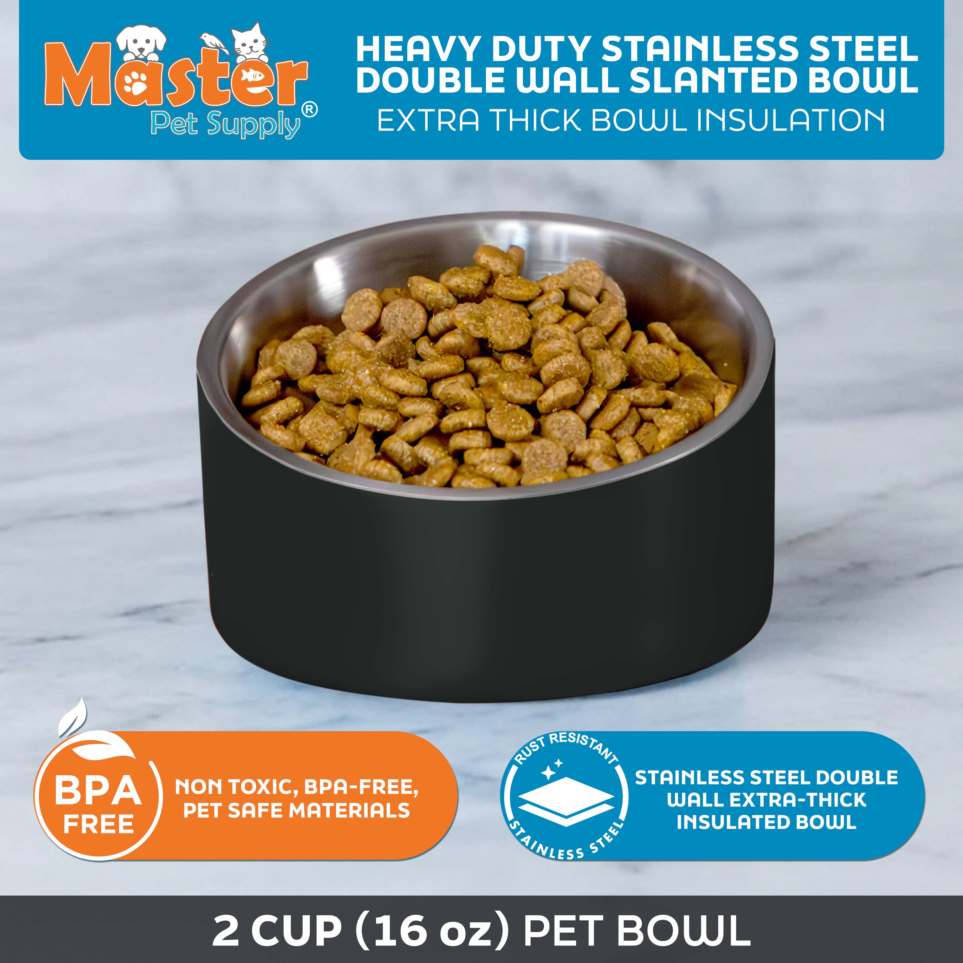 - Stainless Steel Slanted Dog Cat Bowls: Premium extra-thick tilted dog bowl stainless steel with non slip base. Rust-resistant and dishwasher safe for easy cleaning. Maintains water freshness longer than plastic alternatives.