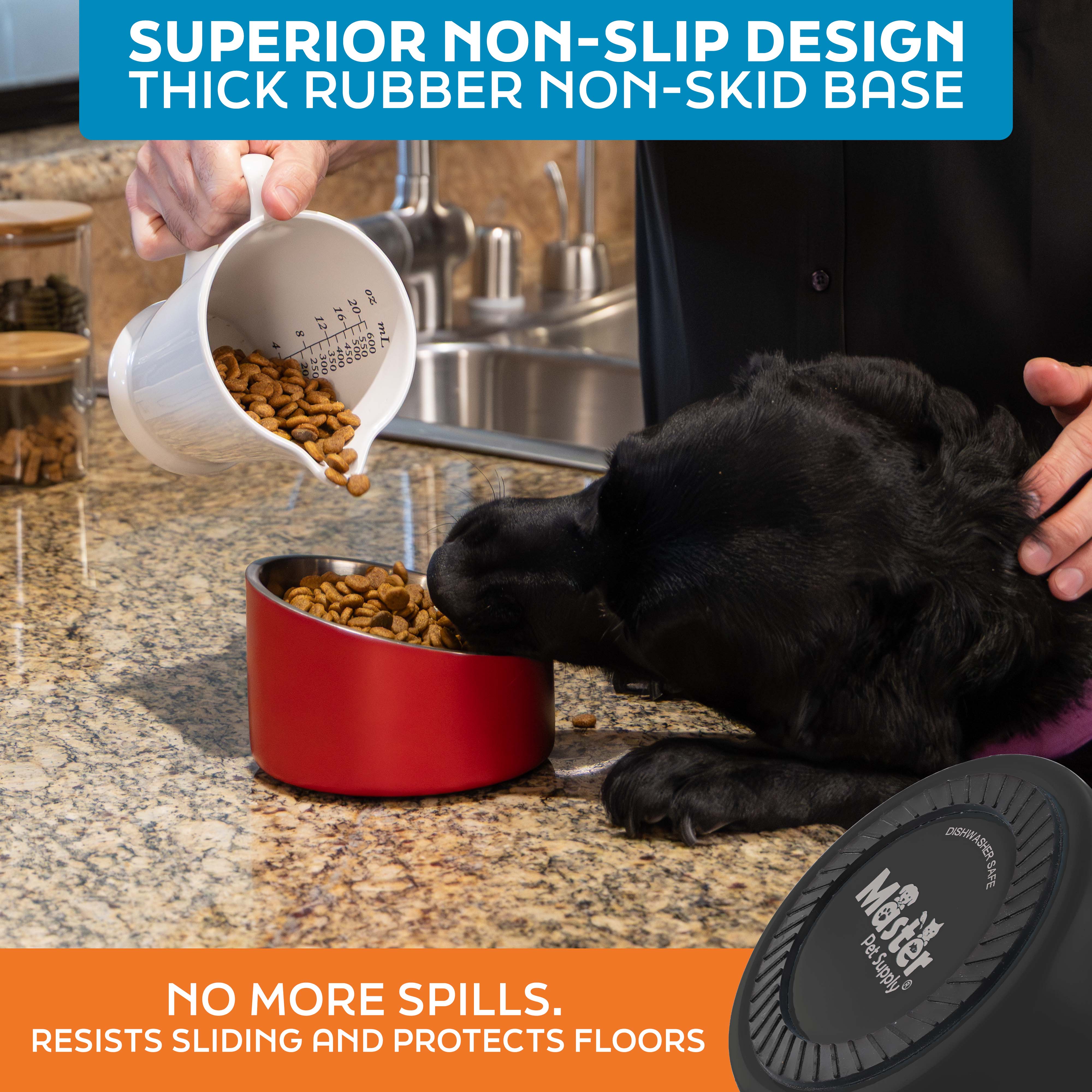 - Anti-Whisker Fatigue Solution: Heavy weighted ergonomic dog bowl with thick rubber non-slip ring base prevents sliding and tipping. Reduces spills and messes. Ideal for active pets and all dog breeds. Angled cat food bowl for whisker fatigue.