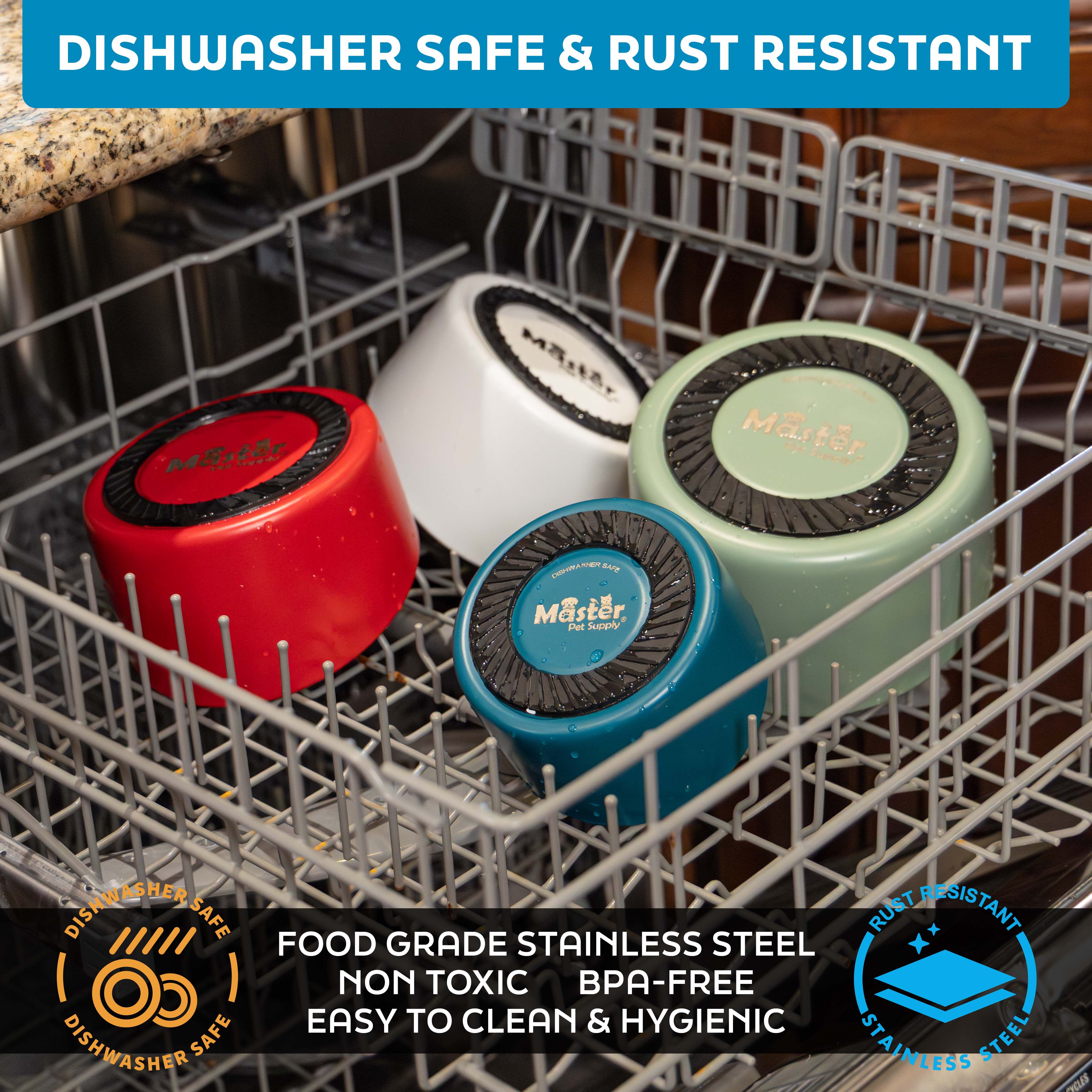 - Premium Food Safe Materials: Insulated non-toxic, BPA-free, pet safe materials with easy to clean stainless steel surface. Hygienic and sturdy since it is a 1-piece design, no food gets trapped. Dishwasher safe pet bowl for indoor or outdoor use.